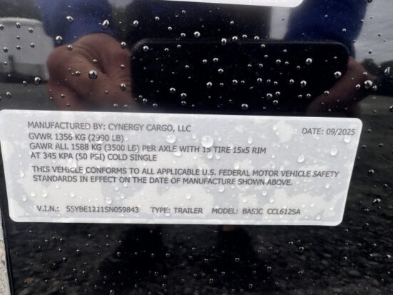 Be the first to review “2025 Cynergy 6×12 Enclosed Trailer STD Barn Door 3K GVWR –”