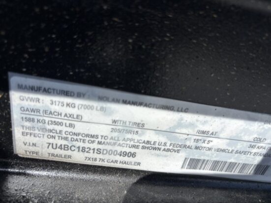 Be the first to review “2025 Nolan Manufacturing 7×18 Car Hauler Trailer Metal Deck 7K GVWR –”