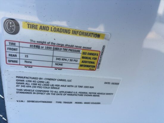 Be the first to review “2026 Cynergy 6×10 Enclosed Trailer STD Barn Door 3K GVWR –”