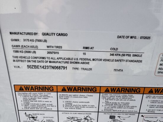 Be the first to review “2026 Quality Cargo 7×14 Enclosed Trailer STD Ramp 7K GVWR –”