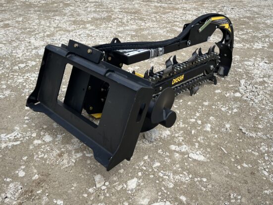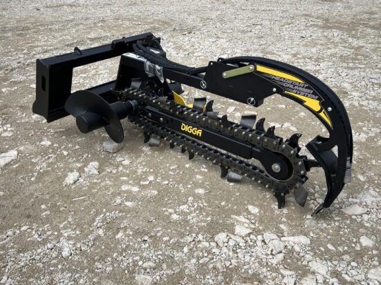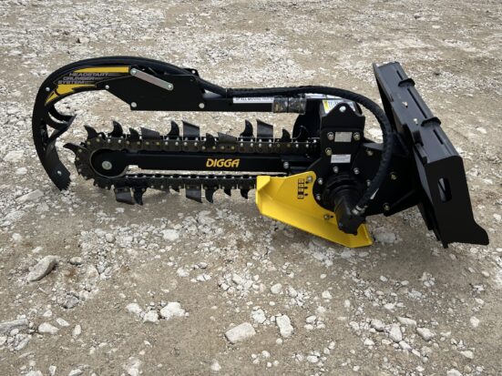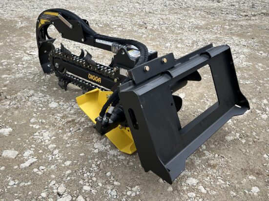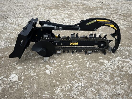 The Digga Bigfoot Mini Trencher is engineered for maximum efficiency and productivity in tight spaces. With a 36” digging depth and 6” cutting width, this trencher is ideal for irrigation, drainage, landscaping, and utility installations. Equipped with Digga’s Combination Chain configuration (cup teeth and tungsten shark teeth), it is suitable for most applications. Will cut through hard soil, roots, soft shale, and rocky conditions. The adjustable depth control foot ensures precise trench depth every time, while the patent-pending crumber bar starts in the trench—eliminating the need for manual resets. This model will fit Bobcat MT100, MT50, MT52, MT85, MT120, S70, 463, L28, and L23 loaders. This item will NOT fit universal quick attach mounts or Toro/Dingo mini skid steer mounts. Key Features: Mounting system for Bobcat MT100, MT50, MT52, MT85, MT120, S70, 463, L28, and L23 loaders Adjustable depth control foot for consistent trenching depths Combo Chain (Earth Teeth and Tungsten Shark Teeth) – Suitable for most conditions Patent-pending crumber bar starts in-trench for faster, safer operation Foot design visible from the cab for accurate positioning Complete trenching solution for clean trenches and improved productivity Heavy-duty construction with Eaton hydraulic motor for long life Compact design ideal for mini skid steer loaders and tight work areas Specifications: Cutting Depth: 36″ Cutting Width: 6″ Chain Type: Combo Chain (Cup Teeth and Tungsten Shark Teeth) Depth Presets: 18″, 24″, 30″, 36″ Hydraulic Flow Required: 10–25 GPM Hydraulic Motor: 2K Bell Eaton Max Pressure: 3,500 PSI @ 16 GPM Max Flow: 25 GPM @ 2,900 PSI Max Continuous Power: 34 HP Length: 74″ Height: 32″ Width: 38″ Weight: 536 Pounds Mounting Style: Bobcat MT and/or S70 Mounting system The Digga Bigfoot Mini Trencher is engineered for maximum efficiency and productivity in tight spaces. With a 36” digging depth and 6” cutting width, this trencher is ideal for irrigation, drainage, landscaping, and utility installations. Equipped with Digga’s Combination Chain configuration (cup teeth and tungsten shark teeth), it is suitable for most applications. Will cut through hard soil, roots, soft shale, and rocky conditions. The adjustable depth control foot ensures precise trench depth every time, while the patent-pending crumber bar starts in the trench—eliminating the need for manual resets. This model will fit Bobcat MT100, MT50, MT52, MT85, MT120, S70, 463, L28, and L23 loaders. This item will NOT fit universal quick attach mounts or Toro/Dingo mini skid steer mounts. Key Features: Mounting system for Bobcat MT100, MT50, MT52, MT85, MT120, S70, 463, L28, and L23 loaders Adjustable depth control foot for consistent trenching depths Combo Chain (Earth Teeth and Tungsten Shark Teeth) – Suitable for most conditions Patent-pending crumber bar starts in-trench for faster, safer operation Foot design visible from the cab for accurate positioning Complete trenching solution for clean trenches and improved productivity Heavy-duty construction with Eaton hydraulic motor for long life Compact design ideal for mini skid steer loaders and tight work areas Specifications: Cutting Depth: 36″ Cutting Width: 6″ Chain Type: Combo Chain (Cup Teeth and Tungsten Shark Teeth) Depth Presets: 18″, 24″, 30″, 36″ Hydraulic Flow Required: 10–25 GPM Hydraulic Motor: 2K Bell Eaton Max Pressure: 3,500 PSI @ 16 GPM Max Flow: 25 GPM @ 2,900 PSI Max Continuous Power: 34 HP Length: 74″ Height: 32″ Width: 38″ Weight: 536 Pounds Mounting Style: Bobcat MT and/or S70 Mounting system