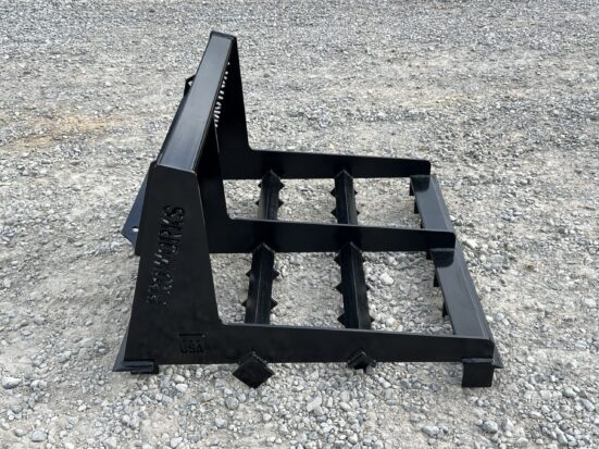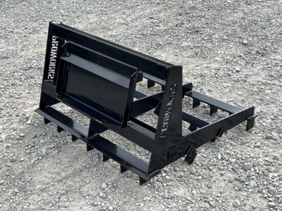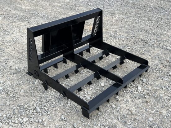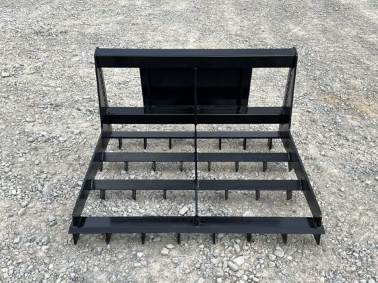 This is a brand new 42″ wide heavy duty land leveler attachment for a mini skid steer loader. The land plane attachment is great for quick and accurate grading. Unit has cutting edges, both front and back, allowing cutting hard surfaces and heavy angled tines in between to sift and spread dirt or gravel to low areas. The addition of the scarifier teeth allows for even better break up of hardened and compacted dirt.This mini universal mounting system is designed to fit the Toro Dingo, Vermeer, Ditch Witch, Finn, Ramrod, Boxer, Thomas and many more machines. Specifications: Width – 42″ 1/2″ Thick by 4″ Wide Cutting Edges 3/8″ Thick Framing 3″ x 3″ Square Tubing Black Paint Made in the USA Note: This has the mini universal mount. This will not fit Bobcat MT’s or ASV/Terex Machines. This is a brand new 42″ wide heavy duty land leveler attachment for a mini skid steer loader. The land plane attachment is great for quick and accurate grading. Unit has cutting edges, both front and back, allowing cutting hard surfaces and heavy angled tines in between to sift and spread dirt or gravel to low areas. The addition of the scarifier teeth allows for even better break up of hardened and compacted dirt.This mini universal mounting system is designed to fit the Toro Dingo, Vermeer, Ditch Witch, Finn, Ramrod, Boxer, Thomas and many more machines. Specifications: Width – 42″ 1/2″ Thick by 4″ Wide Cutting Edges 3/8″ Thick Framing 3″ x 3″ Square Tubing Black Paint Made in the USA Note: This has the mini universal mount. This will not fit Bobcat MT’s or ASV/Terex Machines.