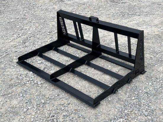 This is a brand new 54″ wide heavy duty land leveler attachment for a mini skid steer loader with the full size Bobcat MT mounting system. The land plane attachment is great for quick and accurate grading. Unit has cutting edges, both front and back, allowing cutting hard surfaces and heavy angled tines in between to sift and spread dirt or gravel to low areas. It is ideal for grading stone driveways or roads and perfect for seed bed preparation, as well as concrete preparation grading. This will fit Bobcat MT50 MT52 MT55 453 463 and S70 Loaders. Specifications: Width – 54″ 1/2″ Thick by 4″ Wide Cutting Edges 3/8″ Thick Framing 3″ x 3″ Square Tubing Black Paint Made in the USA Note: This has the Bobcat MT50 mount. This will not fit universal mini skid steer or ASV/Terex Machines. This is a brand new 54″ wide heavy duty land leveler attachment for a mini skid steer loader with the full size Bobcat MT mounting system. The land plane attachment is great for quick and accurate grading. Unit has cutting edges, both front and back, allowing cutting hard surfaces and heavy angled tines in between to sift and spread dirt or gravel to low areas. It is ideal for grading stone driveways or roads and perfect for seed bed preparation, as well as concrete preparation grading. This will fit Bobcat MT50 MT52 MT55 453 463 and S70 Loaders. Specifications: Width – 54″ 1/2″ Thick by 4″ Wide Cutting Edges 3/8″ Thick Framing 3″ x 3″ Square Tubing Black Paint Made in the USA Note: This has the Bobcat MT50 mount. This will not fit universal mini skid steer or ASV/Terex Machines.
