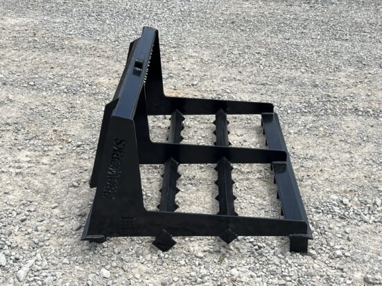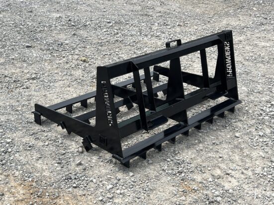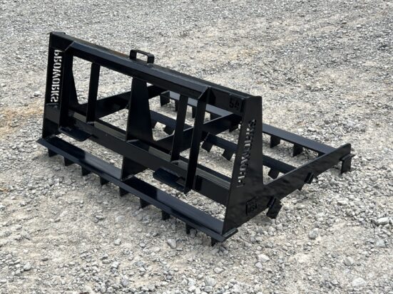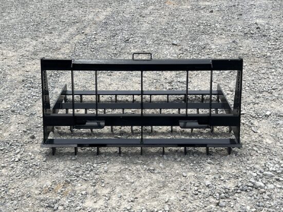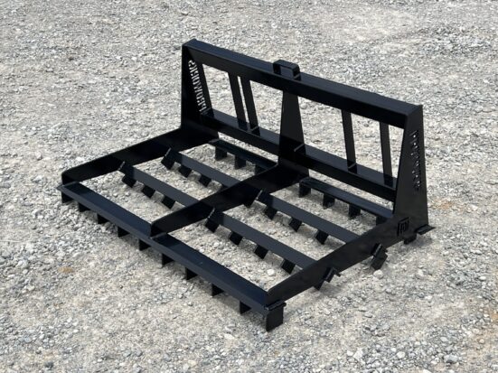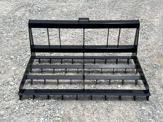 This is a brand new 54″ wide heavy duty land leveler attachment for a mini skid steer loader with the full size Bobcat MT mounting system. The land plane attachment is great for quick and accurate grading. Unit has cutting edges, both front and back, allowing cutting hard surfaces and heavy angled tines in between to sift and spread dirt or gravel to low areas. The addition of the scarifier teeth allows for even better break up of hardened and compacted dirt. It is ideal for grading stone driveways or roads and perfect for seed bed preparation, as well as concrete preparation grading. This will fit Bobcat MT50 MT52 MT55 453 463 and S70 Loaders. Specifications: Width – 54″ 1/2″ Thick by 4″ Wide Cutting Edges 3/8″ Thick Framing 3″ x 3″ Square Tubing Black Paint Made in the USA Note: This has the Bobcat MT50 mount. This will not fit universal mini skid steer or ASV/Terex Machines. This is a brand new 54″ wide heavy duty land leveler attachment for a mini skid steer loader with the full size Bobcat MT mounting system. The land plane attachment is great for quick and accurate grading. Unit has cutting edges, both front and back, allowing cutting hard surfaces and heavy angled tines in between to sift and spread dirt or gravel to low areas. The addition of the scarifier teeth allows for even better break up of hardened and compacted dirt. It is ideal for grading stone driveways or roads and perfect for seed bed preparation, as well as concrete preparation grading. This will fit Bobcat MT50 MT52 MT55 453 463 and S70 Loaders. Specifications: Width – 54″ 1/2″ Thick by 4″ Wide Cutting Edges 3/8″ Thick Framing 3″ x 3″ Square Tubing Black Paint Made in the USA Note: This has the Bobcat MT50 mount. This will not fit universal mini skid steer or ASV/Terex Machines.