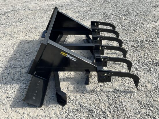 This heavy-duty 72″ leveling spreader grading bar is designed for precision grading and ground preparation with your skid steer or tractor loader. Built for performance and durability, it’s ideal for use on dirt, gravel, driveways, roads and many more applications. Key Features: Adjustable Ripper Teeth: Includes six front-mounted ripper shanks with two adjustment positions—perfect for loosening compacted soil and breaking up hard ground before grading. Triple-Bar Leveling System: Front V-Beam: Designed to slice through high spots and begin the leveling process. Middle Reverse V-Beam: Redistributes material and smooths it further. Rear Straight Beam: Allows for effective backdragging and finishing passes to create a flat, professional-grade surface. Built Tough: Leveling beams construction of robust channel steel for long-lasting performance. Weight: 444 lbs – heavy enough for effective grading but easy to maneuver with most machines. Quick Attach Mounting System: Features the skid steer style quick attach mounting system. Will fit on most compact track loaders, skid steer loaders and many tractor loaders. Whether you’re building a gravel road, reconditioning a driveway, or prepping soil for landscaping, this attachment delivers the control and quality finish you need. This heavy-duty 72″ leveling spreader grading bar is designed for precision grading and ground preparation with your skid steer or tractor loader. Built for performance and durability, it’s ideal for use on dirt, gravel, driveways, roads and many more applications. Key Features: Adjustable Ripper Teeth: Includes six front-mounted ripper shanks with two adjustment positions—perfect for loosening compacted soil and breaking up hard ground before grading. Triple-Bar Leveling System: Front V-Beam: Designed to slice through high spots and begin the leveling process. Middle Reverse V-Beam: Redistributes material and smooths it further. Rear Straight Beam: Allows for effective backdragging and finishing passes to create a flat, professional-grade surface. Built Tough: Leveling beams construction of robust channel steel for long-lasting performance. Weight: 444 lbs – heavy enough for effective grading but easy to maneuver with most machines. Quick Attach Mounting System: Features the skid steer style quick attach mounting system. Will fit on most compact track loaders, skid steer loaders and many tractor loaders. Whether you’re building a gravel road, reconditioning a driveway, or prepping soil for landscaping, this attachment delivers the control and quality finish you need.