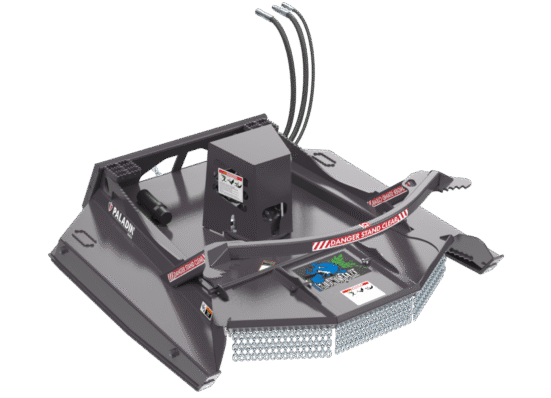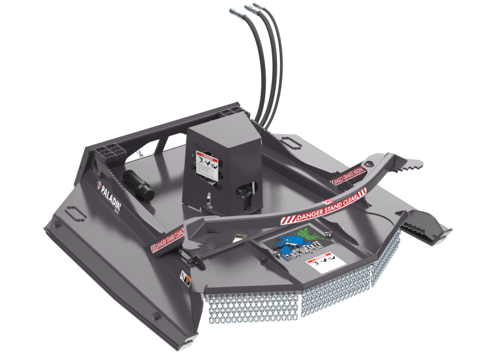 The 72″ wide Ground Shark extreme duty high flow brush cutter is designed for clearing medium to heavy density brush and hardwoods up to 10″ in diameter from wooded acreages, road right-of-ways, and pipeline maintenance. When the exclusive, patented retractable forward shield comes in contact with a tree, it moves up and back to expose the entire cutting edge of each blade while protecting the operator from flying debris. Specifications: Model Number – 30272-9925 Overall Height – 28.13 Inches Overall Width – 77.13 Inches Overall Length – 85.59 Inches Cutting Width – 72 Inches Minimum Cutting Height – 3.25 Inches Minimum Stump Grinding Height – 0.38 Inches Cutting Capacity – 10 Inches Deck Thickness – 0.25 Inches Recommended Hydraulic Flow Range – 30 to 45 GPM Required Lift Capacity – 2,400 Pounds Weight – 2,008 Pounds Includes hydraulic hose kit with 3/4″ flat face couplers The 72″ wide Ground Shark extreme duty high flow brush cutter is designed for clearing medium to heavy density brush and hardwoods up to 10″ in diameter from wooded acreages, road right-of-ways, and pipeline maintenance. When the exclusive, patented retractable forward shield comes in contact with a tree, it moves up and back to expose the entire cutting edge of each blade while protecting the operator from flying debris. Specifications: Model Number – 30272-9925 Overall Height – 28.13 Inches Overall Width – 77.13 Inches Overall Length – 85.59 Inches Cutting Width – 72 Inches Minimum Cutting Height – 3.25 Inches Minimum Stump Grinding Height – 0.38 Inches Cutting Capacity – 10 Inches Deck Thickness – 0.25 Inches Recommended Hydraulic Flow Range – 30 to 45 GPM Required Lift Capacity – 2,400 Pounds Weight – 2,008 Pounds Includes hydraulic hose kit with 3/4″ flat face couplers