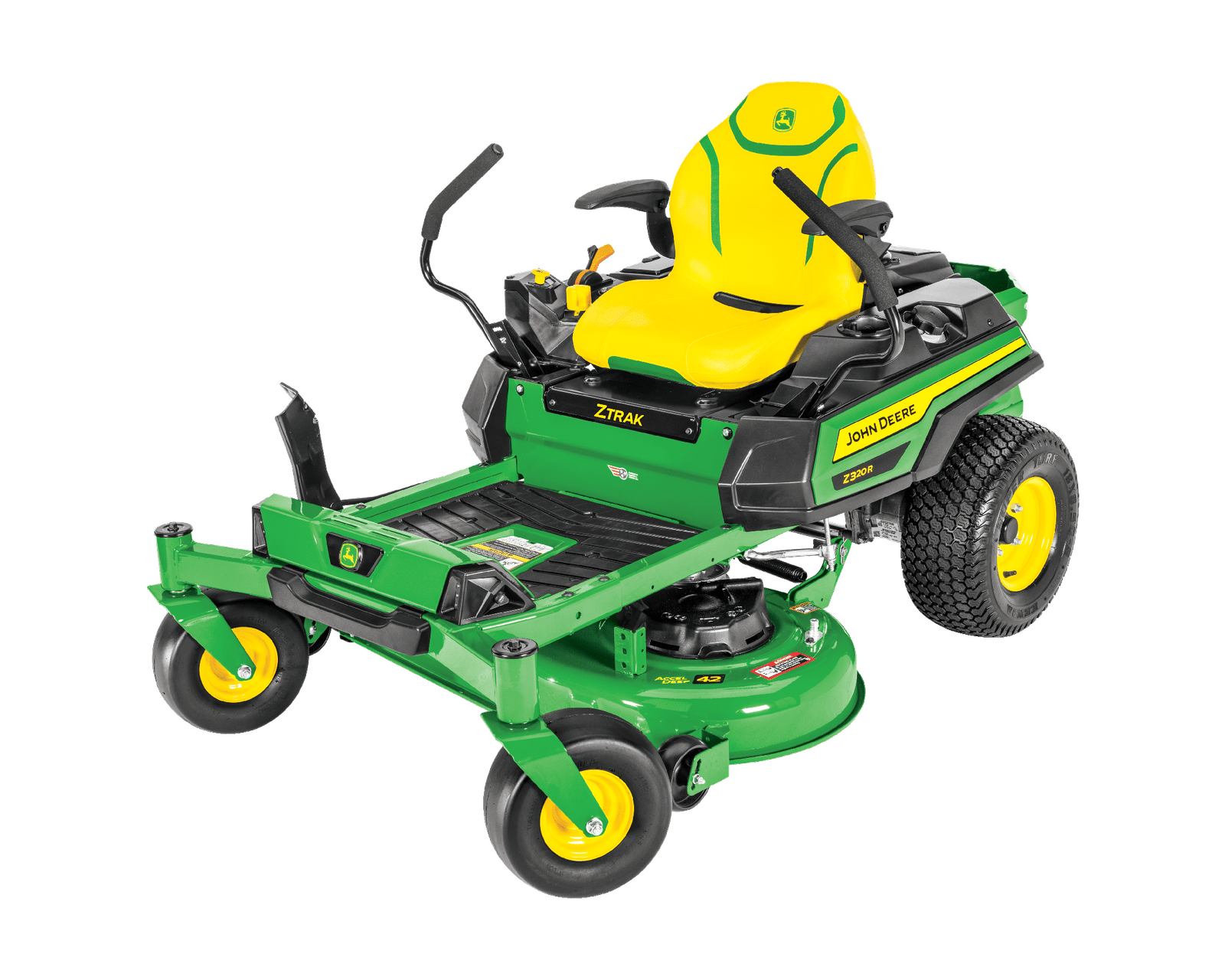 Product Details 48-inch forged Accel Deep™ Mower Deck 24 HP, 724 cc V-Twin engine Maximum forward speed 7 mph 3-gallon fuel tank 18 inch high back with optional armrests 3-year/200-hour bumper-to-bumper warranty Mow up to 2 acres Specs Tires: Front caster tires: 11×6-5; Drive tires: 20×10-8 Displacement / Speed (cc): 724 Fuel Capacity (gal): 3.0 Engine Size (hp): 24 Drive System: Hydro-Gear EZT w/1-in. axles Steering: Twin levers Lift: Foot Lift Warranty: 3 year or 200 hour bumper-to-bumper Product Weight (lbs.): 594 Brand: John Deere Cutting / Clearing Width (In): 48
