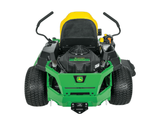 Product Details 54-inch Accel Deep™ Mower Deck 23 HP, 726 cc V-Twin engine Maximum forward speed 7 mph 3-gallon fuel tank 20 inch high back custom-tailored seat Standard rear hitch 3-year/200-hour bumper-to-bumper warranty Mow up to 2 acres   Specs Tires: Front caster tires: 11×6-5; Drive tires: 20×10-8 Displacement / Speed (cc): 726 Fuel Capacity (gal): 3.0 Engine Size (hp): 23 Drive System: Hydro-Gear EZT w/1-in. axles Steering: Twin levers Lift: Foot Lift Warranty: 3 year or 200 hour bumper-to-bumper Product Weight (lbs.): 598 Brand: John Deere Cutting / Clearing Width (In): 54