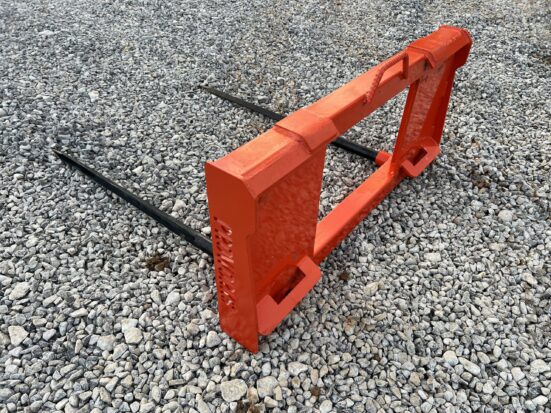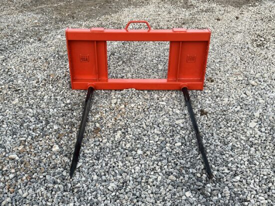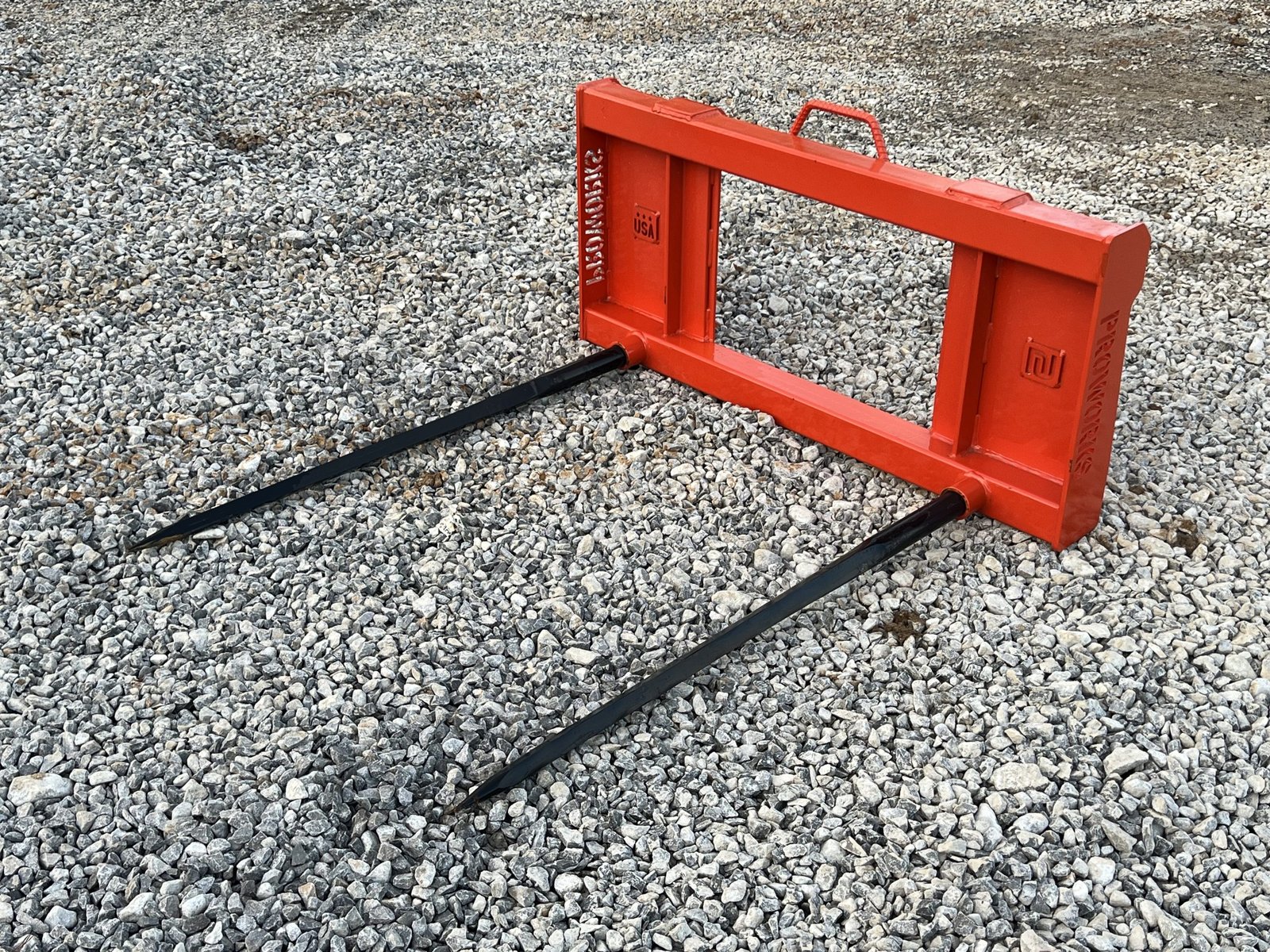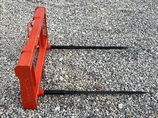 This is a brand new PROWORKS low-back dual hay spear attachment designed for skid steers and tractor loaders equipped with the universal skid steer quick-attach system. Built heavy-duty and proudly made in the USA, this attachment is engineered to handle demanding farm and ranch work with ease. Featuring two 49″ heat-treated, forged bale spears, this attachment is perfect for moving both round and square bales. The low-profile back design provides excellent visibility to the spears for precise bale handling and stacking. Key Features Fits all skid steers & tractor loaders with Universal SSQA Heavy-duty American-made frame Dual 49″ forged spears for secure bale handling Low-profile design for improved operator visibility Ideal for hay farms, cattle operations, and feed lots Suitable for round & square bales Specifications Brand: PROWORKS Weight: 150 lbs Spears: (2) 49″ tapered, heat-treated, forged Spear Rating: 3,000 lbs each Frame Width: 45″ Color: Orange Mounting System: Universal Skid Steer Quick Attach Origin: Made in the USA This is a brand new PROWORKS low-back dual hay spear attachment designed for skid steers and tractor loaders equipped with the universal skid steer quick-attach system. Built heavy-duty and proudly made in the USA, this attachment is engineered to handle demanding farm and ranch work with ease. Featuring two 49″ heat-treated, forged bale spears, this attachment is perfect for moving both round and square bales. The low-profile back design provides excellent visibility to the spears for precise bale handling and stacking. Key Features Fits all skid steers & tractor loaders with Universal SSQA Heavy-duty American-made frame Dual 49″ forged spears for secure bale handling Low-profile design for improved operator visibility Ideal for hay farms, cattle operations, and feed lots Suitable for round & square bales Specifications Brand: PROWORKS Weight: 150 lbs Spears: (2) 49″ tapered, heat-treated, forged Spear Rating: 3,000 lbs each Frame Width: 45″ Color: Orange Mounting System: Universal Skid Steer Quick Attach Origin: Made in the USA