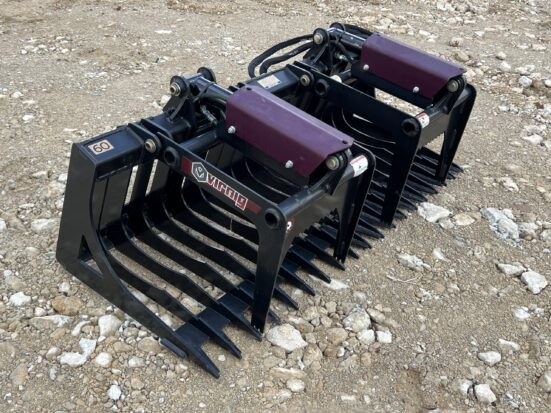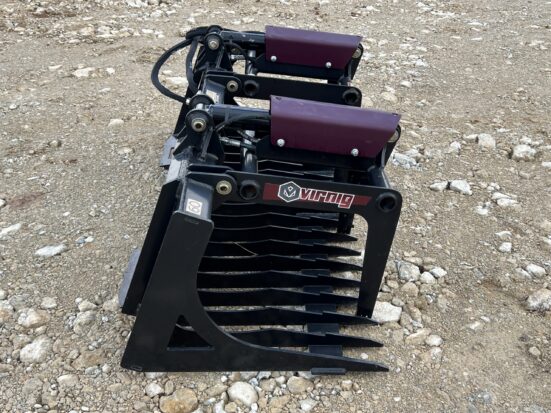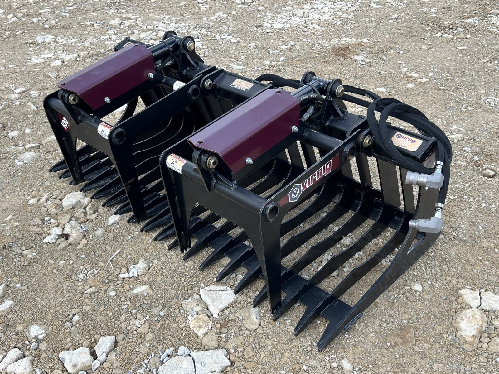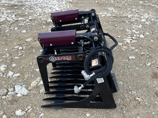 The Virnig V30 Compact Tractor Rock Grapple is designed for compact loaders with an operating capacity under 1,500 lbs, giving smaller machines the ability to handle rocks, brush, and uneven loads with ease. At 60″ wide, this grapple allows you to sift dirt from rocks and debris, while securely clamping irregular material. Each tine is cut from a single piece of 1/4″ Grade 50 steel and fully gusseted for strength. Curved side plates improve handling of wide material, while the rock dam and notched tine tips hold rocks securely in place. The grapple is equipped with Nitrosteel cylinder rods and Teflon-coated bushings for long-lasting, smooth operation. Key Features: 60″ wide skeleton grapple for compact tractors Fits loaders with less than 1,500 lb operating capacity One-piece Grade 50 steel tines with gussets for rigidity Curved side plates for wider material handling Rock dam and notched tips hold rocks securely Dual grapple design for clamping uneven loads Nitrosteel cylinder rods with Teflon-coated bushings for durability Specifications: Weight: 385 Pounds Number of Tines (with sides): 19 Tine Spacing: 3.1″ Tine Thickness: 0.25″ Side Plate Thickness: 0.375″ Grapple Jaw Opening: 28.7″ Cylinders: 2″ bore x 6″ stroke Pin Diameter: 1.0″ Recommended Loader Capacity: Less than 1,500 lbs Overall Width: 60.9″ Overall Height: 22.9″ Bucket Height: 19″ Overall Depth: 29″ Inside Depth: 23.5″ Condition Note:This is new but old inventory. The grapple has never been used. Functionality is not affected. This item is sold “As Is, Where Is”, with no warranty. Equipment details and related information is limited to sight, sound, and feel. Items are limited to testing at low speeds, in a confined flat area without load, and in limited operating conditions. We make no guarantees of any information, including year, actual hours, miles, safety or regulatory compliance, weights or measurements, specifications, and/or operational condition. Photos and videos take priority if there are discrepancies within the listing. Weights, dimensions, features, specifications, resource links and all other information are provided as general guidance, are approximate, and may vary from year to year, model to model, and machine to machine. Buyer acknowledges they are experienced with this type of equipment, are responsible for services, repairs, and maintenance of all items purchased to a safe operating condition and will obtain all permits and certifications required by law for use. The Virnig V30 Compact Tractor Rock Grapple is designed for compact loaders with an operating capacity under 1,500 lbs, giving smaller machines the ability to handle rocks, brush, and uneven loads with ease. At 60″ wide, this grapple allows you to sift dirt from rocks and debris, while securely clamping irregular material. Each tine is cut from a single piece of 1/4″ Grade 50 steel and fully gusseted for strength. Curved side plates improve handling of wide material, while the rock dam and notched tine tips hold rocks securely in place. The grapple is equipped with Nitrosteel cylinder rods and Teflon-coated bushings for long-lasting, smooth operation. Key Features: 60″ wide skeleton grapple for compact tractors Fits loaders with less than 1,500 lb operating capacity One-piece Grade 50 steel tines with gussets for rigidity Curved side plates for wider material handling Rock dam and notched tips hold rocks securely Dual grapple design for clamping uneven loads Nitrosteel cylinder rods with Teflon-coated bushings for durability Specifications: Weight: 385 Pounds Number of Tines (with sides): 19 Tine Spacing: 3.1″ Tine Thickness: 0.25″ Side Plate Thickness: 0.375″ Grapple Jaw Opening: 28.7″ Cylinders: 2″ bore x 6″ stroke Pin Diameter: 1.0″ Recommended Loader Capacity: Less than 1,500 lbs Overall Width: 60.9″ Overall Height: 22.9″ Bucket Height: 19″ Overall Depth: 29″ Inside Depth: 23.5″ Condition Note:This is new but old inventory. The grapple has never been used. Functionality is not affected. This item is sold “As Is, Where Is”, with no warranty. Equipment details and related information is limited to sight, sound, and feel. Items are limited to testing at low speeds, in a confined flat area without load, and in limited operating conditions. We make no guarantees of any information, including year, actual hours, miles, safety or regulatory compliance, weights or measurements, specifications, and/or operational condition. Photos and videos take priority if there are discrepancies within the listing. Weights, dimensions, features, specifications, resource links and all other information are provided as general guidance, are approximate, and may vary from year to year, model to model, and machine to machine. Buyer acknowledges they are experienced with this type of equipment, are responsible for services, repairs, and maintenance of all items purchased to a safe operating condition and will obtain all permits and certifications required by law for use.